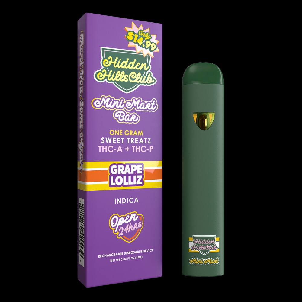 Buy hidden hills cart, Elevate your vaping experience with the Sweet Treatz Mini Mart Bar, a 1‑gram disposable device powered by a premium THC‑A and THC‑P blend in a liquid diamonds + live resin formula. Designed for smooth, flavorful vaping with fast-acting effects and easy usability.